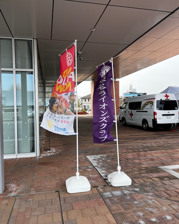 当日は、赤十字血液センターより献血バス2台と職員の皆様、深谷ライオンズクラブの皆様、当クラブ社会奉仕寺田委員長をはじめ、委員会の皆様には寒い中、会場設営から準備まで手際よく進めていただき献血がスタート。